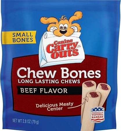 Canine Carry Outs Long Lasting Beef Flavor Chew Bones Made in the USA Tasty Meaty Dog Treats Food Snacks for Small Dogs, 2.8 oz – Pack of 2