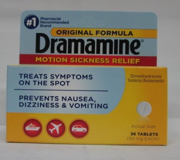 Active Ingredient (in each tablet): Dimenhydrinate 50mg, Purpose: Antiemetic; Inactive Ingredients: Colloidal silicon dioxide, croscarmellose sodium, lactose, magnesium stearate, microcrystalline cellulose